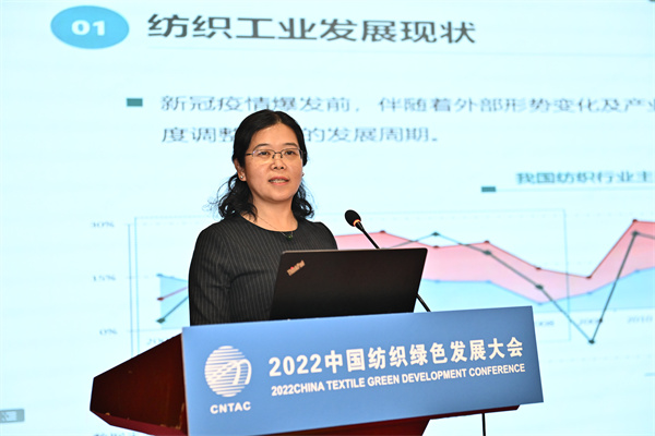 她表示,綠色發(fā)展是紡織行業(yè)高質量發(fā)展的必然選擇,是鞏固優(yōu)勢產業(yè)領先地位的重要舉措,正在成為行業(yè)發(fā)展的新引擎、新動能。針對行業(yè)未來綠色發(fā)展,她提出四點建議:一是加強頂層設計推進紡織綠色低碳轉型;二是加強協同創(chuàng)新加大紡織綠色低碳技術應用推廣;三是加快結構優(yōu)化形成綠色低碳生產生活方式;四是完善標準認證構建綠色轉型服務體系。