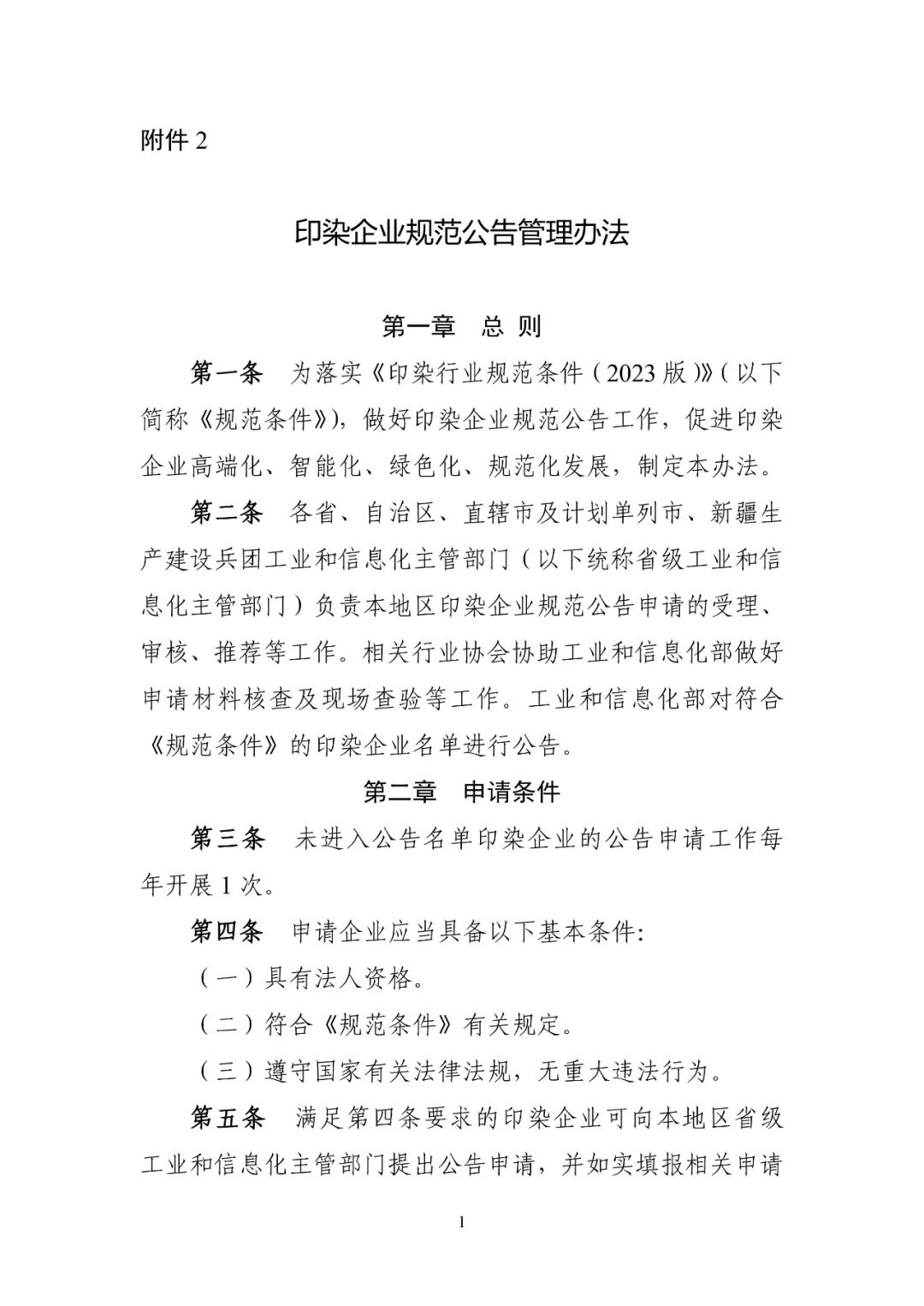 為全面貫徹黨的二十大精神,加快推進新型工業化,更好發揮規范條件引領技術進步、推動綠色發展、促進轉型升級的作用,工業和信息化部對《印染行業規范條件(2017版)》及《印染企業規范公告管理暫行辦法》進行了修訂,形成了