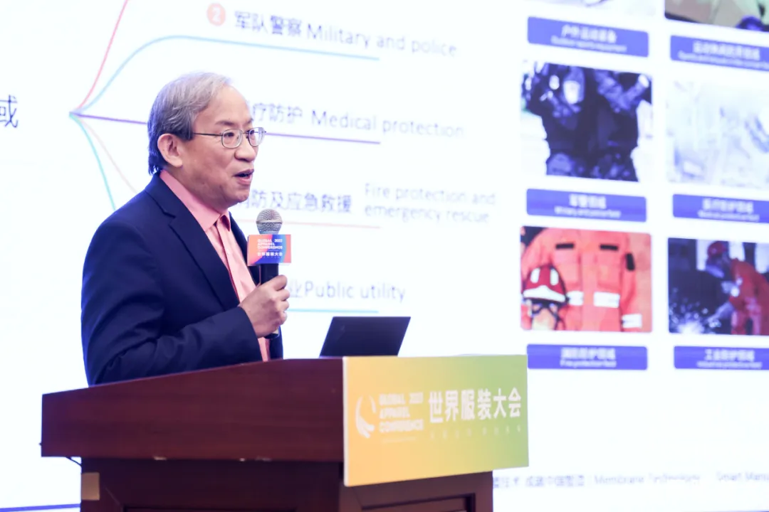 國家高層次人才、膜材料專家、上海漢丞實業(yè)有限公司董事長吳慧生作《功能性防護(hù)膜材料在紡織服裝行業(yè)應(yīng)用現(xiàn)狀和趨勢研究》報告。吳慧生介紹,當(dāng)前紡織服裝膜材料的應(yīng)用場景主要包括大眾消費(fèi)、軍隊警察、醫(yī)療防護(hù)、消防及應(yīng)急救援、公共事業(yè)等方面,未來應(yīng)用場景將更加廣泛。他簡要介紹了紡織服裝膜材料發(fā)展歷史,并指出紡織服裝膜材料未來會朝著舒適性、時尚性、科技性、耐候性、耐化性、環(huán)保性的方向發(fā)展。他強(qiáng)調(diào),紡織服裝膜材料要加強(qiáng)與納米材料、氣凝膠、石墨烯等新材料的融合創(chuàng)新,并積極研發(fā)具有防風(fēng)防雨、舒適透氣、阻燃抗菌、耐化耐候等多功能的紡織服裝膜材料。