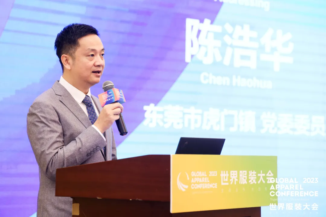 東莞市虎門鎮(zhèn)黨委委員陳浩華在致辭時表示,經(jīng)過多年發(fā)展,虎門服裝服飾業(yè)形成了規(guī)模龐大的產(chǎn)業(yè)集群、配套完善的產(chǎn)業(yè)鏈條、成熟發(fā)達(dá)的市場體系,服裝服飾年產(chǎn)值430億元,年銷售額超830億元,生產(chǎn)及配套的企業(yè)(機(jī)構(gòu))近4000家,從業(yè)人員超過20萬人,虎門更是全國12個世界級紡織服裝產(chǎn)業(yè)集群先行區(qū)中唯一突出“服裝產(chǎn)業(yè)”的先行區(qū)。他指出,此次會議匯聚國內(nèi)外專家、紡織服裝產(chǎn)業(yè)鏈優(yōu)秀企業(yè)代表,聚焦紡織服裝品質(zhì)提升與功能性拓展,圍繞面料流行趨勢等內(nèi)容展開交流和探討,必將為虎門服裝的時尚創(chuàng)新帶來新的思考和開拓新的路徑。