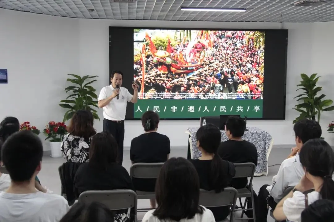 2024年“文化和自然遺產(chǎn)日”來臨之際,青島市圖書館舉辦了“多彩非遺綻放迷人光彩”主題講座,青島大學(xué)美術(shù)學(xué)院教授侍錦為大家系統(tǒng)講解了非遺的相關(guān)知識,以及非遺與現(xiàn)代生活息息相關(guān)的聯(lián)系,并通過織布機(jī)、泥老虎、墨斗、魚盤等大量實(shí)例,分享了非遺的迷人光彩。