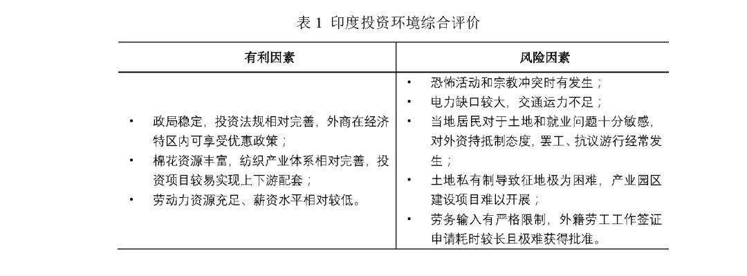 (5)印度紡織產業體系相對完善,與我國紡織行業的競爭關系更為顯著,我國紡織企業赴印度投資風險居多,如僅出于商業目的,建議我國紡織企業充分進行盡職調查,慎重做出投資決策。
