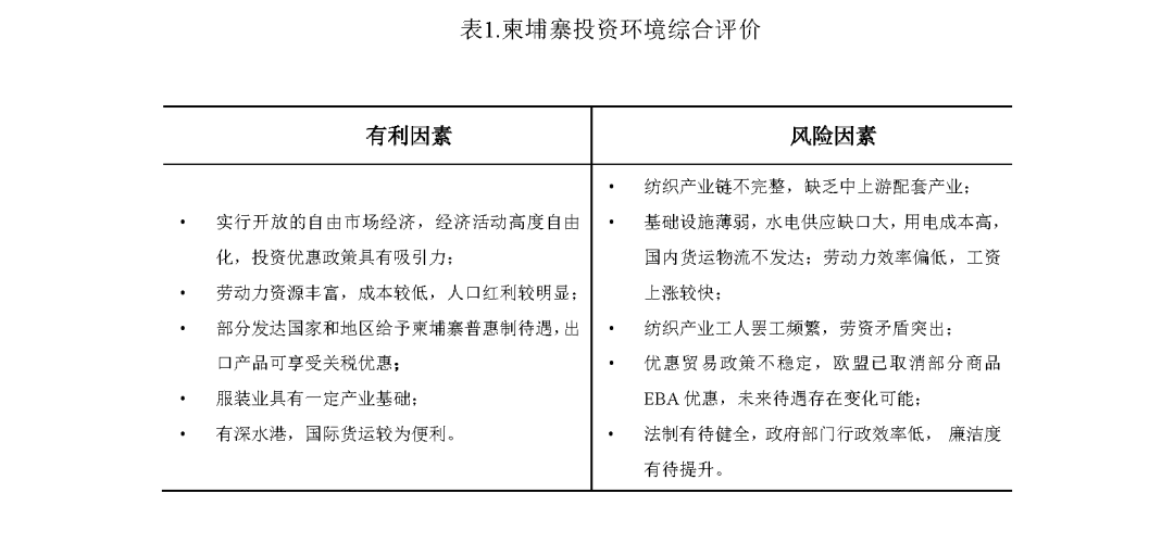 (3)服裝加工業是柬埔寨最大的工業產業,具備一定產業基礎,但目前出口加工仍是產業鏈主體,紡織面料仍然依賴于進口,在國際供應鏈上處于相對低端位置。出口市場集中于美、歐,易受國際經濟環境影響。柬埔寨現階段急需發展紡織產業鏈中上游環節,企業可根據下游產業需求情況,考慮投資布局織造、染整等環節,但由于電力穩定供應不足,要考慮配置自備發電設備;金邊周邊地區水質偏硬,如投建印染企業,需先行考慮相關技術路線或避開該區域進行投資。