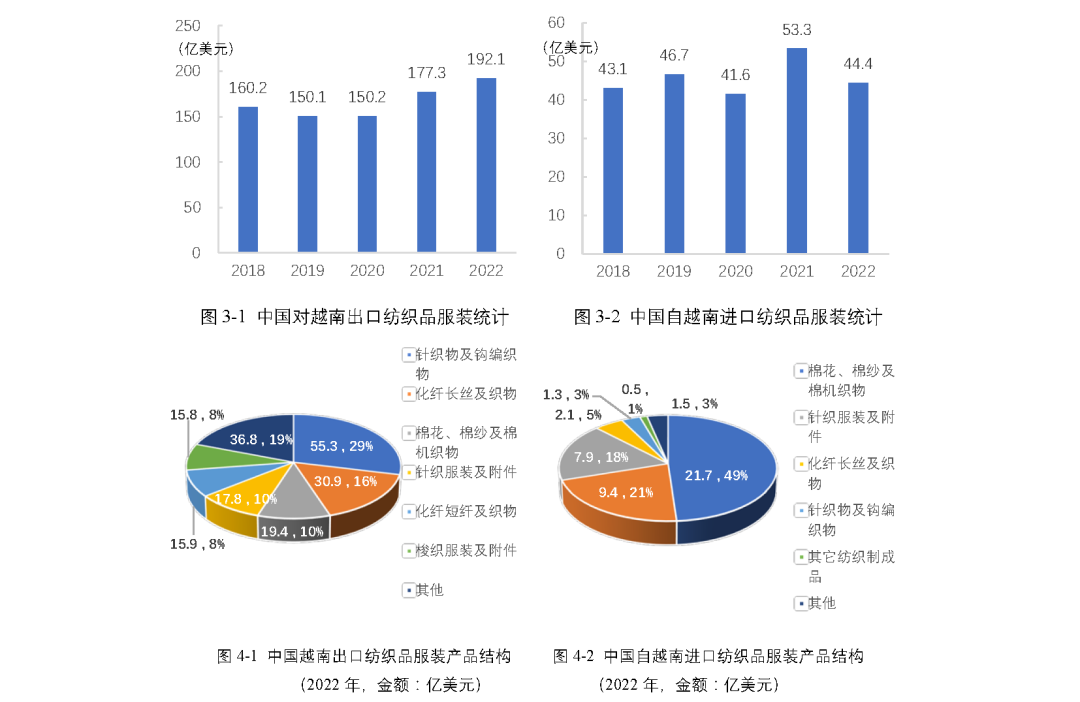 (1)越南政局相對穩定,是中國—東盟自貿區和RCEP成員,北部與我國接壤,公路運輸較為便利,我國與越南紡織行業深化經貿合作具備良好基礎條件。