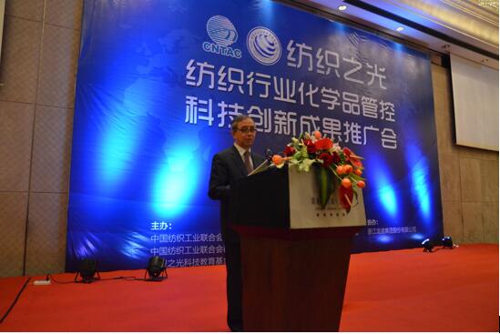 5月13日,由中國紡織工業聯合會、中國紡織工業聯合會科技發展部、紡織之光科技教育基金會主辦,浙江龍盛集團股份有限公司協辦,中國紡織工業聯合會社會責任辦公室、中國紡織信息中心共同承辦的“紡織之光”紡織行業化學品管控重點成果現場推廣活動在浙江省紹興市上虞區舉行。中國紡織工業聯合會副會長孫瑞哲,中國紡織工業聯合會顧問陳樹津,中國紡織工業聯合會科技發展部主任、紡織之光科技教育基金會副理事長彭燕麗,中紡聯財務部主任、紡織之光科技教育基金會副理事長葉志民、中國染料工業協會副會長兼秘書長田利明、中國紡織信息中心主任喬艷津、中國紡織工業聯合會社會責任辦公室副主任閻巖、ZDHC基金會亞洲區總監林立等,以及來自國際供應鏈品牌、紡織重點企業、化學品行業和合成革行業企業、行業服務機構的代表近200人參加會議。