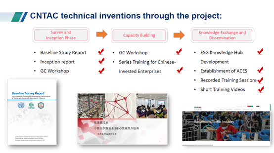 隨后,中國紡織工業(yè)聯(lián)合會社會責(zé)任辦公室首席研究員梁曉暉就中國紡聯(lián)和中資企業(yè)在項目中的工作成果做簡要匯報。 中國紡聯(lián)在項目中的技術(shù)貢獻 當(dāng)前,項目已取得了許多有益的成果,“我們看到這個項目首要的特點,就是聚焦。”中國商務(wù)部國際經(jīng)貿(mào)關(guān)系司副處長耿琳琳對項目成果給出了高度評價。她認為,聚焦于一個國家、一個產(chǎn)業(yè)的可持續(xù)發(fā)展能力提升項目,給產(chǎn)業(yè)帶來了切實的變化與提升。“第二是協(xié)同。”項目進行中,中國紡織工業(yè)聯(lián)合會發(fā)揮行業(yè)組織的平臺優(yōu)勢,廣泛聯(lián)絡(luò)在埃塞俄比亞投資運營的中資企業(yè),依托聯(lián)合國工業(yè)發(fā)展組織、埃塞俄比亞制造業(yè)發(fā)展研究院等合作單位的各方資源,發(fā)揮“1+1>2”的協(xié)同效應(yīng),進行了扎實的調(diào)研,并提出了切實可行的建議和舉措。“第三是賦能,我們看到了項目對產(chǎn)業(yè)、對企業(yè)、對民眾的賦能,特別是對女性員工的高度關(guān)注。”耿琳琳還強調(diào),項目在促進女性員工就業(yè)、助力女性員工職業(yè)發(fā)展、提升女性員工工作滿意度等方面做出的努力,具有重大的社會意義與可持續(xù)發(fā)展價值。