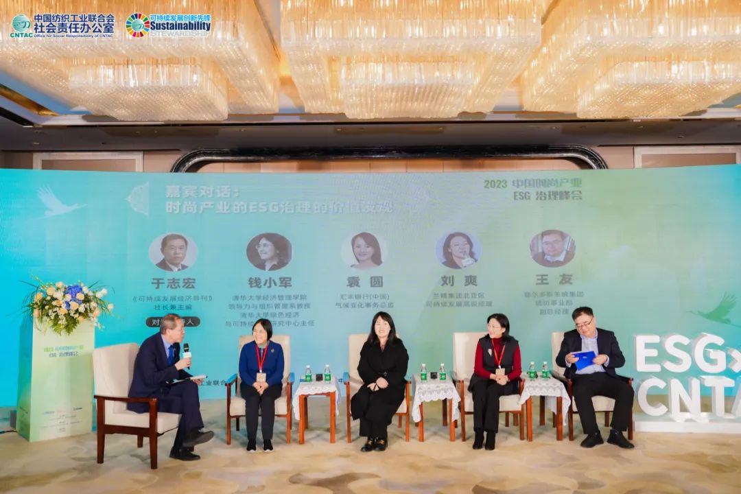 除內(nèi)容分享外,會議設(shè)置了嘉賓對話環(huán)節(jié),由《可持續(xù)發(fā)展經(jīng)濟導(dǎo)刊》社長兼主編于志宏主持,邀請清華大學(xué)經(jīng)濟管理學(xué)院領(lǐng)導(dǎo)力與組織管理系教授、清華大學(xué)綠色經(jīng)濟可持續(xù)發(fā)展研究中心主任錢小軍、匯豐銀行(中國)氣候變化事務(wù)總監(jiān)袁圓、蘭精集團北亞區(qū)可持續(xù)發(fā)展高級經(jīng)理劉爽、鄂爾多斯羊絨集團絨紡事務(wù)部副總經(jīng)理王友,圍繞時尚產(chǎn)業(yè)ESG治理的價值發(fā)現(xiàn)進行探討。