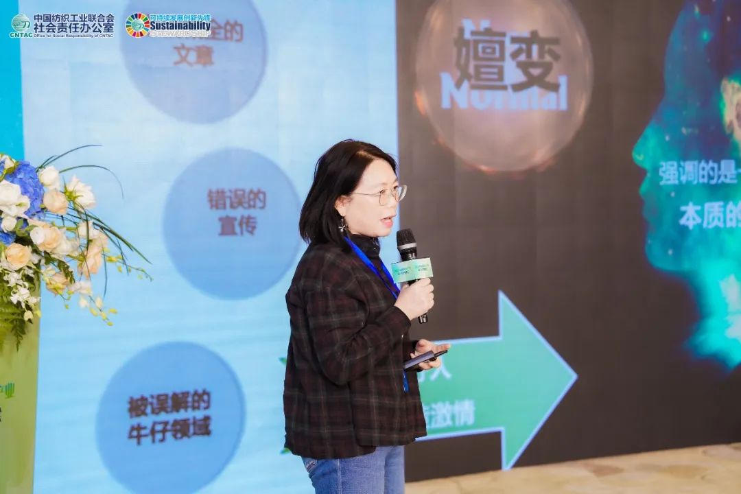 前進牛仔CEO王宗文作為制造企業(yè)代表分享了她的經(jīng)驗。她表示,牛仔行業(yè)經(jīng)過多年技術(shù)發(fā)展,已擺脫高耗水高污染的標(biāo)簽,且完全有潛力成為最環(huán)保的面料之一,這主要基于其原料生物基、短流程制造、化學(xué)品少、常溫染色、洗水技術(shù)變革、洗滌微纖少等特點。當(dāng)談到企業(yè)ESG管理經(jīng)驗時,她提到前進牛仔近年來主要在可持續(xù)采購、設(shè)備開發(fā)、產(chǎn)品研發(fā)、能源管理、廢物治理、智能化改造幾個方面發(fā)力,如持續(xù)提升可持續(xù)纖維使用比例、使用環(huán)保染色設(shè)備、實行54項技改活動、實現(xiàn)年循環(huán)用水46萬噸,數(shù)字孿生技術(shù)實現(xiàn)車間水電氣數(shù)據(jù)實時跟蹤等。