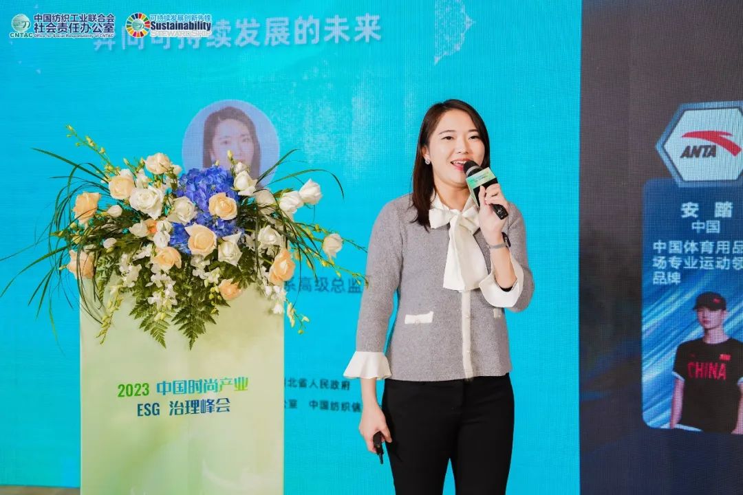 作為品牌企業(yè)代表,安踏集團ESG及投資關(guān)系高級總監(jiān)黃萃琪表示,安踏自2007年開始應(yīng)香港聯(lián)交所要求披露CSR報告;2016年開始發(fā)布ESG報告,是第一個發(fā)布ESG報告的中國體育用品公司;2021年安踏成立30周年之際在內(nèi)部建立了可持續(xù)發(fā)展委員會,自上而下推動ESG工作。“與伙伴共生”是安踏將ESG融入公司戰(zhàn)略的核心理念。經(jīng)過重要性調(diào)研,安踏將“消費者”“人”“伙伴”“員工”“供應(yīng)商伙伴”五個方面作為重點,分別制定目標(biāo)并實施。例如,公司制定了2050年碳中和的氣候目標(biāo),截至今年年底女性高管比例已超過36%,開展供應(yīng)商環(huán)境與社會方面的培訓(xùn),將可持續(xù)原材料比例披露于包裝和吊牌上等等。