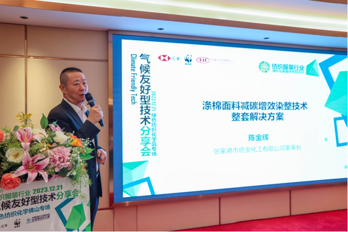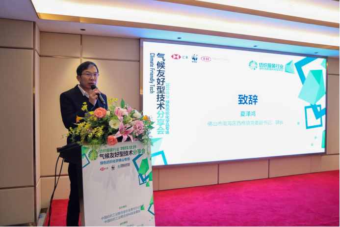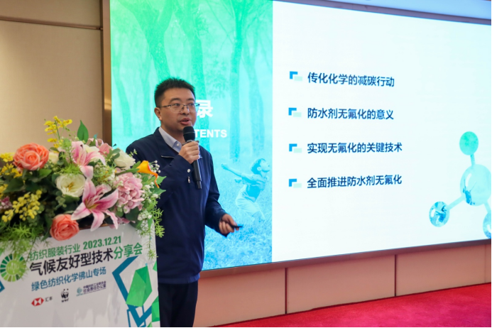 2023年12月21日,由中國紡織工業(yè)聯(lián)合會(huì)社會(huì)責(zé)任辦公室、中國紡織工業(yè)聯(lián)合會(huì)科技發(fā)展部聯(lián)合主辦的氣候友好型技術(shù)分享會(huì)-綠色紡織化學(xué)品專場(chǎng)在佛山西樵成功舉辦。會(huì)議由匯豐銀行(中國)和世界自然基金會(huì)(瑞士)北京代表處支持,中國紡織信息中心、中聯(lián)品檢(佛山)檢驗(yàn)技術(shù)有限公司承辦。