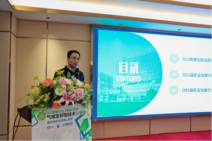 楊之卓先生重點(diǎn)介紹了德美的短流程及生物基低碳染整解決方案。該方案聚焦于紡織行業(yè)的綠色、低碳轉(zhuǎn)型,提出創(chuàng)新的生產(chǎn)制造過程,以降低能耗、減少污染,并推廣可持續(xù)的原材料使用。并突出了該方案在節(jié)能減排、提升效率方面的優(yōu)勢(shì),旨在為全球紡織行業(yè)供應(yīng)鏈提供可復(fù)制的運(yùn)用案例,推動(dòng)整個(gè)行業(yè)的環(huán)境友好轉(zhuǎn)型。