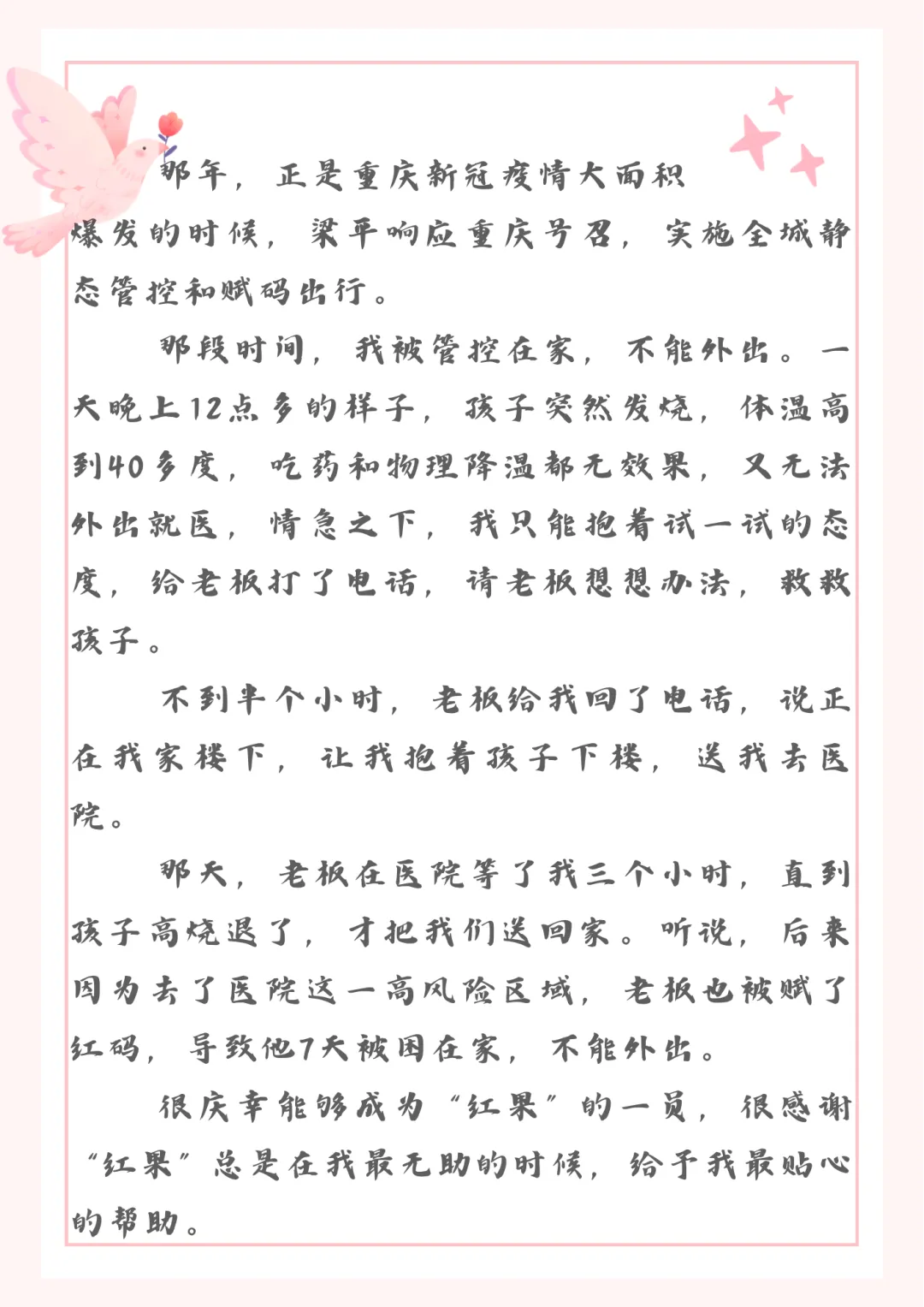 “紅果給我的不僅僅是一個謀生的崗位,更多的是如家人般的理解和幫助,讓我感覺紅果就是一個可依可靠的大家庭。”
