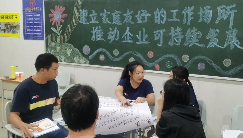 2023年9月,高州榮成在PUMA (彪馬) 的支持下正式加入FFF試點項目,并在中國紡聯社會責任辦公室FFF專家團隊指導下完成了初評,根據FFF專家團隊初評建議,進一步規范企業FFF相關制度管理,著手制定“促進員工家庭友好”的整體工作規劃;2023年11月,企業參加了由中國紡聯社會責任辦公室FFF專家團隊組織的為期兩日FFF專題培訓;同年12月,企業完成FFF相關制度文件修訂;2024年1月,企業正式發布《家庭友好企業政策》;隨后,企業陸續開展內部培訓,開展政策宣導,并充分利用外界資源開展培訓,例如邀請當地婦聯專家開展了全員反家暴培訓;并創立企業婦女聯合會,成立婦聯工作室等。