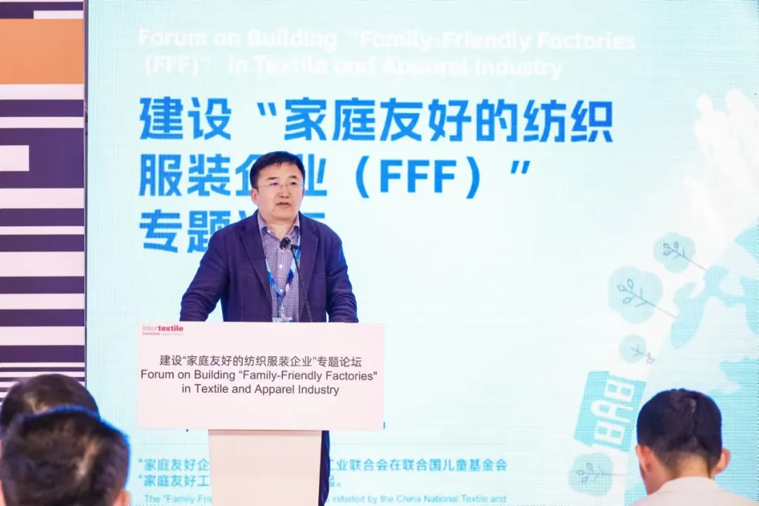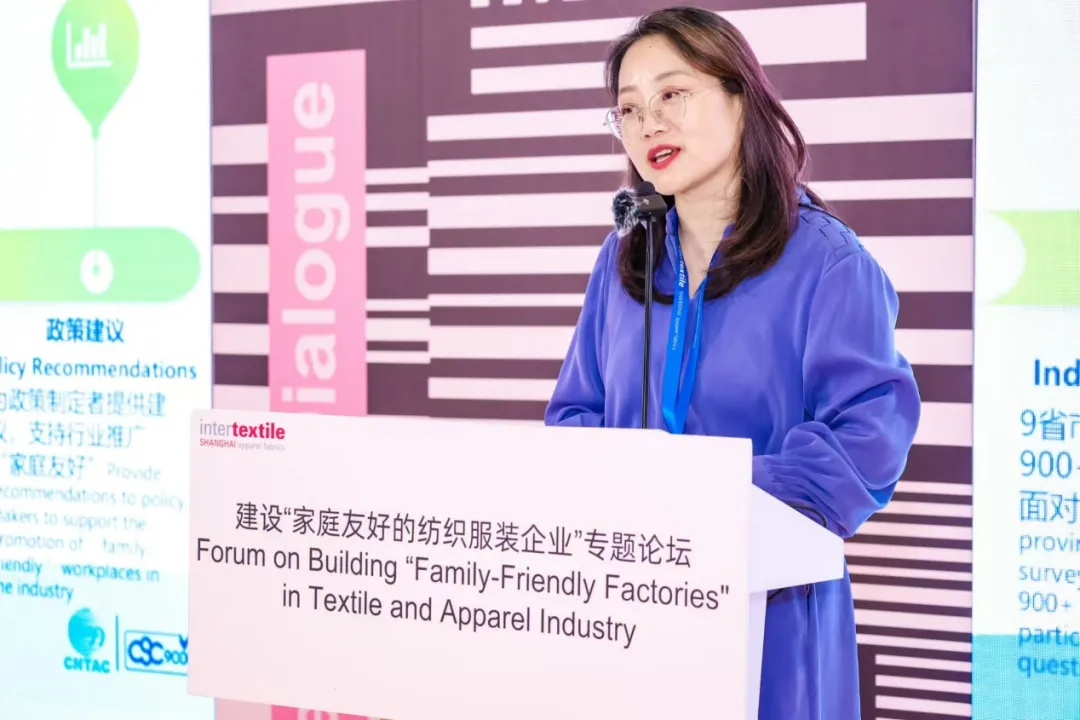 中華全國總工會一級巡視員王雙清通過視頻全面闡述了工會在推動家庭友好型紡織服裝企業建設中的積極作用,他指出工會自2021年積極投身建設,編制指導手冊,2023年聯合多部門開展典型案例征集活動,推出了100個家庭友好型工作場所典范。他表示鑒于紡織業人才短缺,特別是女職工就業壓力,推廣家庭友好項目迫在眉睫。