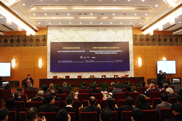 --中歐供應鏈社會責任峰會暨紡織服裝行業社會責任年會隆重召開 2008年11月18日,中國紡織工業協會與歐洲外貿協會在北京人民大會堂召開“中歐供應鏈社會責任峰會&rdquo