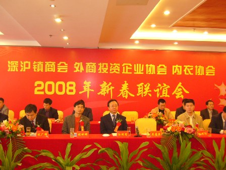 2008年1月9日,中國紡織工業(yè)協(xié)會孫瑞哲副會長一行應邀出席中國內衣名鎮(zhèn)――深滬鎮(zhèn)(福建晉江)商會、外商投資企業(yè)協(xié)會、內衣協(xié)會聯(lián)合舉辦的“2008年新春聯(lián)誼會”。