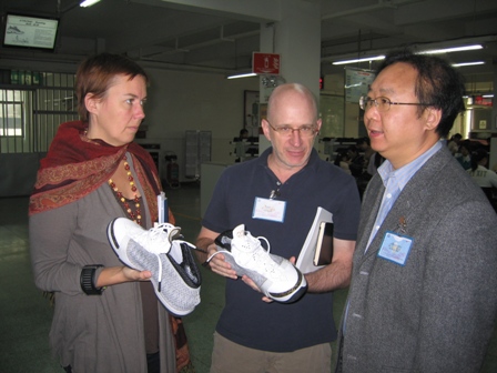 2008年3月4日,應耐克(NIKE)公司的邀請,中國紡織工業(yè)協(xié)會副會長兼中國紡織工業(yè)協(xié)會社會責任建設推廣辦公室主任孫瑞哲(圖右一)在廣東省東莞市會見了耐克公司副總裁Hannah Jones女士(圖左一)一行,就行業(yè)協(xié)會與國際品牌