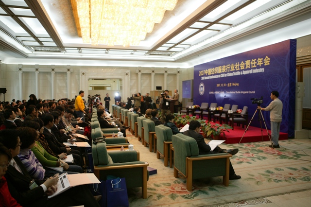 2007年12月18日,中國紡織工業(yè)協(xié)會在北京人民大會堂召開“2007中國紡織服裝行業(yè)社會責任年會”,“以人為本,承擔責任,科學發(fā)展”成為本屆年會的主題內容,年會總結了一年來紡織服裝行業(yè)大力開展
