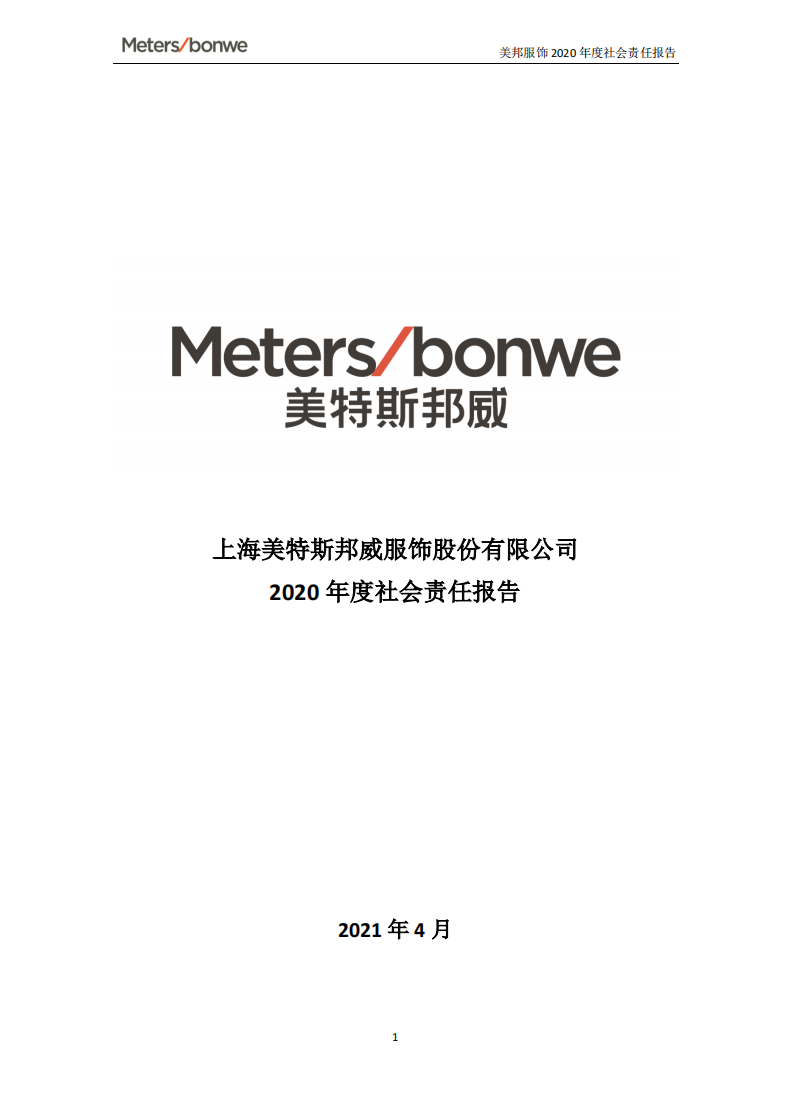 美特斯邦威服飾股份有限公司2020年度社會責任報告